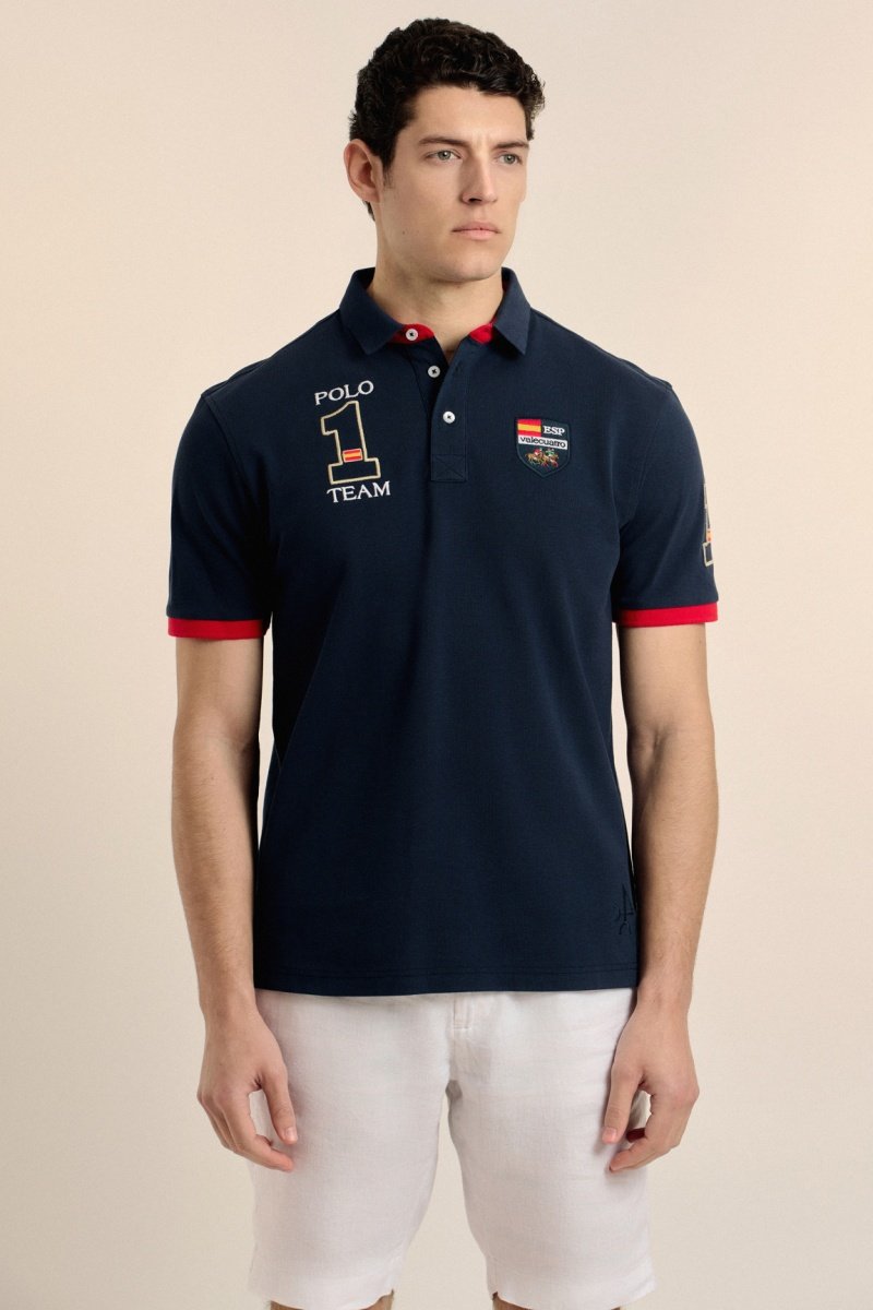 Número, inscrição, estampado decorativo e logótipo à frente e atrás.