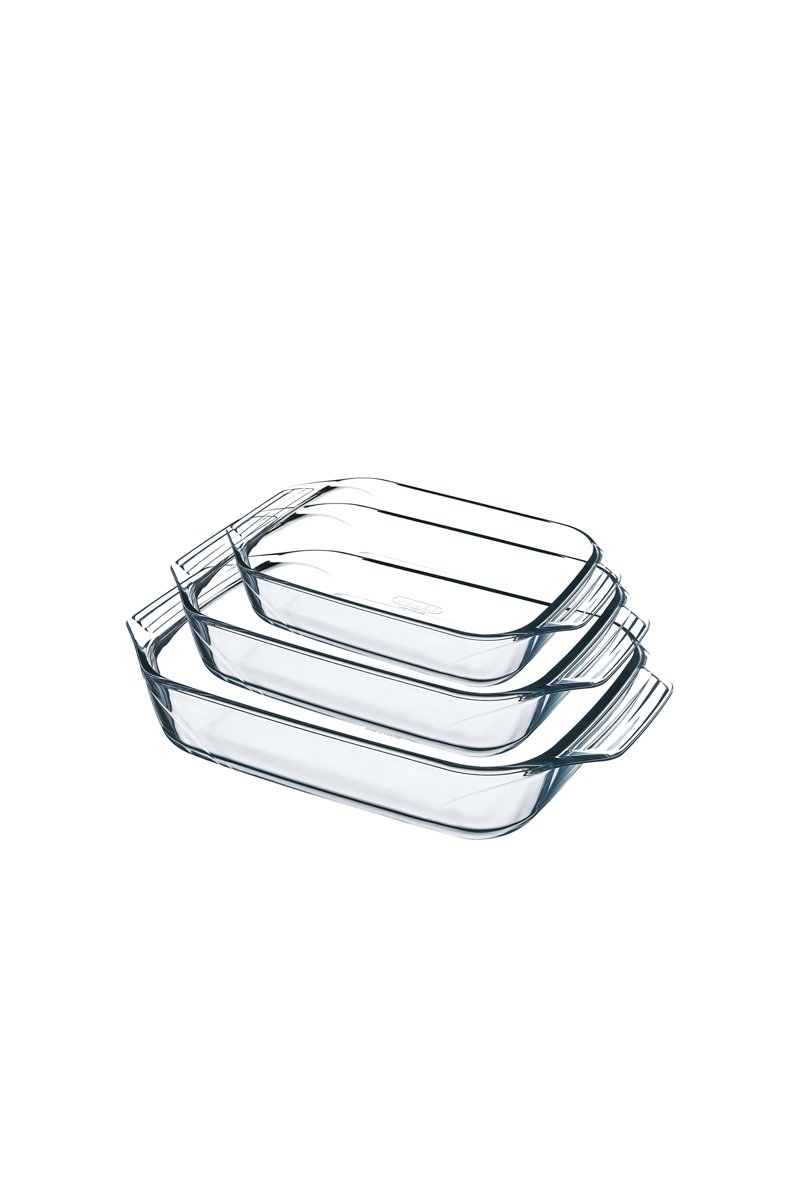 3 travessas para forno retangulares em vidro borossilicato com:
