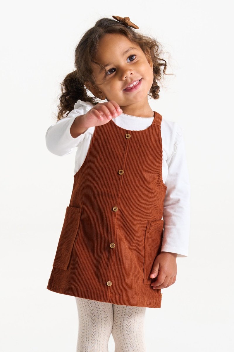 Vestido-jardineiras em veludo - Castanho - Obaïbi