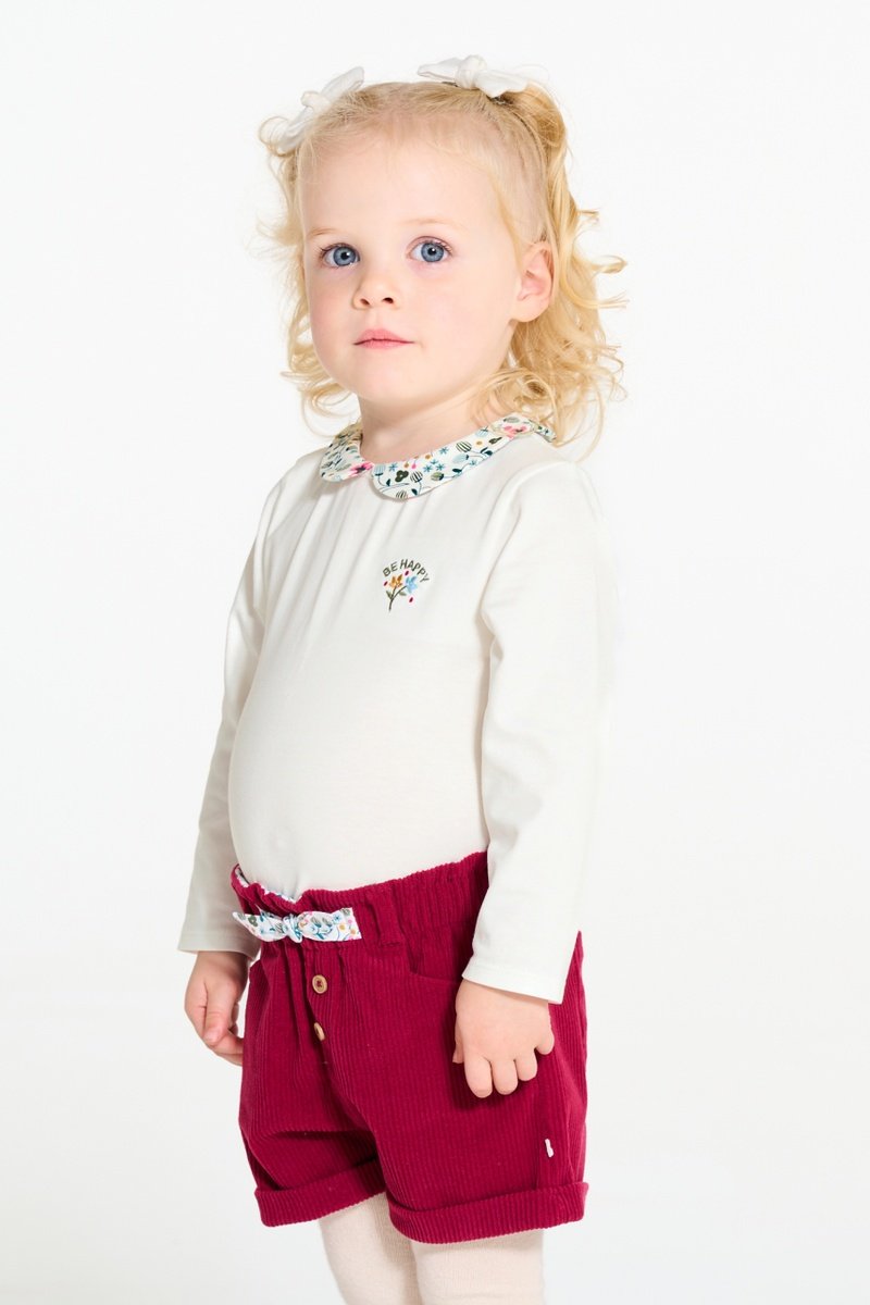 Gola Peter Pan com padrões floridos.