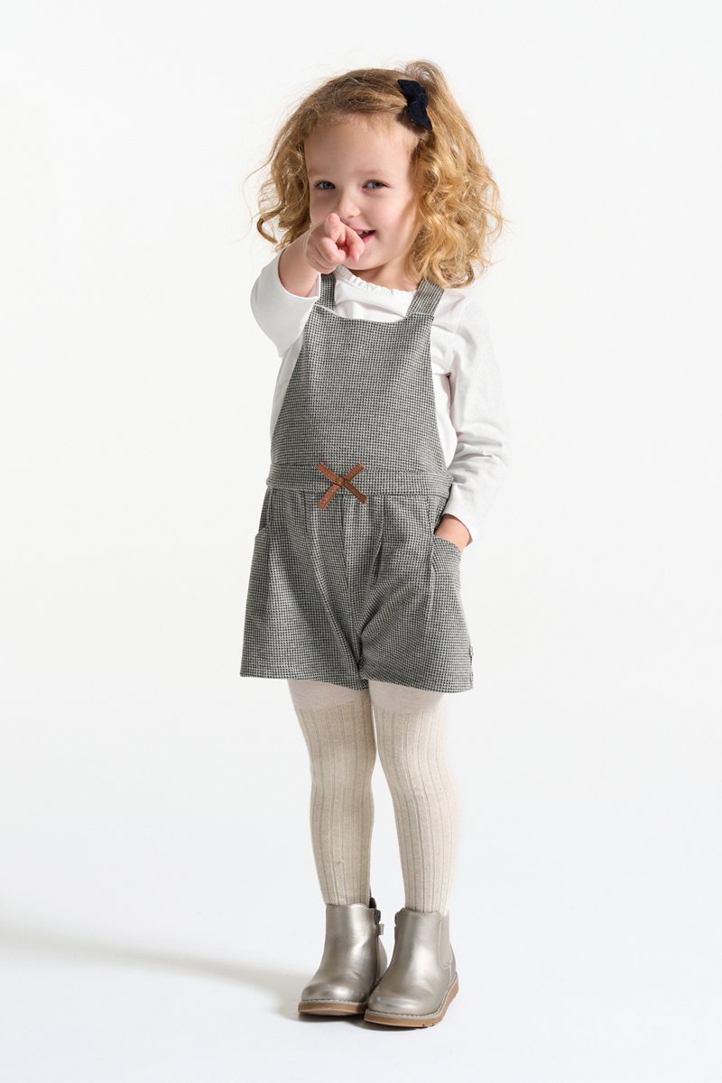 T-shirt e jardineiras - Branco e cinzento - Obaïbi
