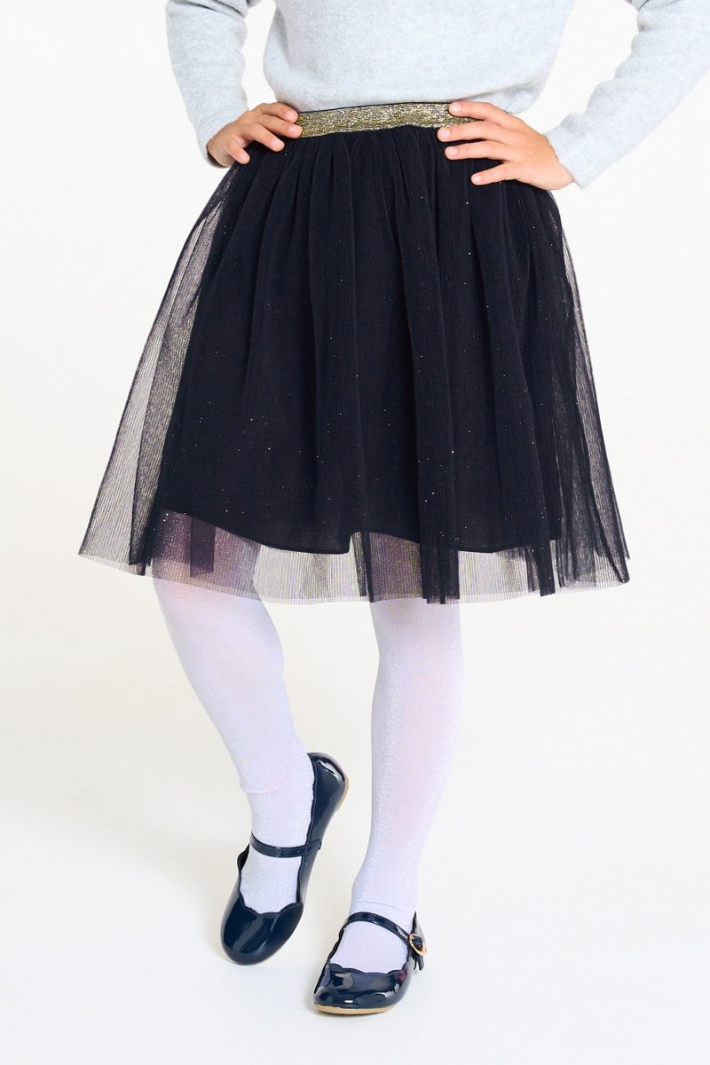 Saia em tule com purpurinas.