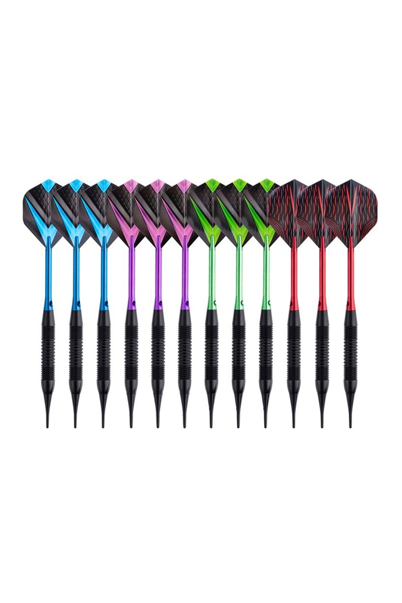 Jogo de 12 dardos profissionais com ponta plástica 19gr - Modelo Cupra - Multicolor