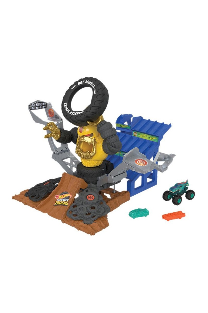 Prepare-se para dar às crianças uma experiência de jogo cheia de aventura e adrenalina com este magnífico conjunto de caixas Wrex vs Gorzilla Monster Truck Arena!
