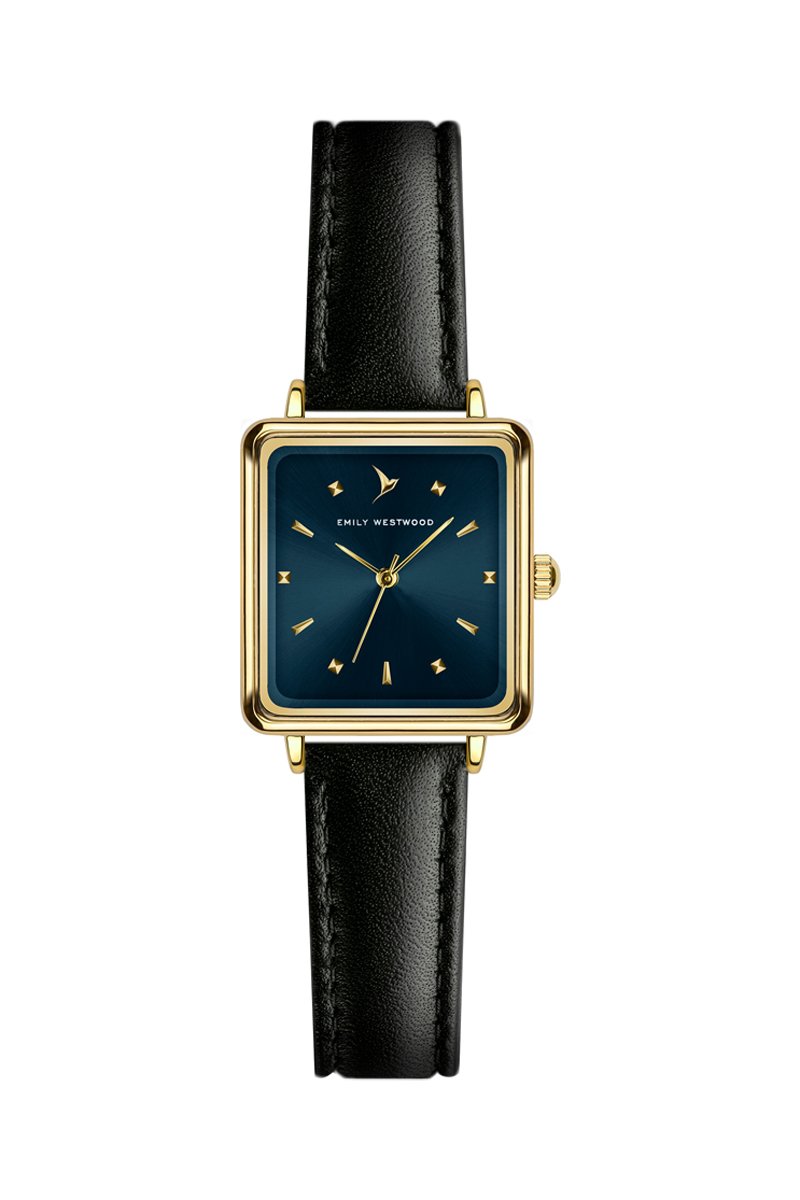 Relógio de quartzo em couro - Preto e dourado - Emily Westwood