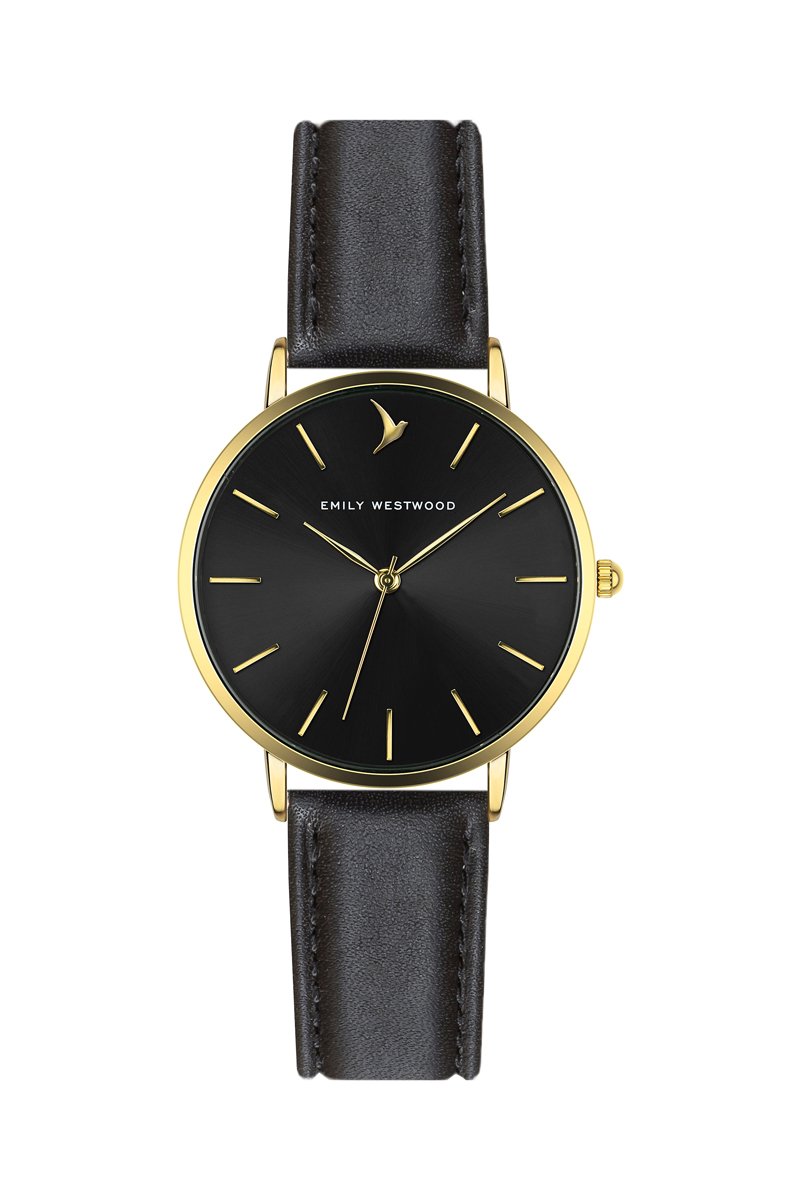 Relógio de quartzo em couro - Preto e dourado - Victoria Walls