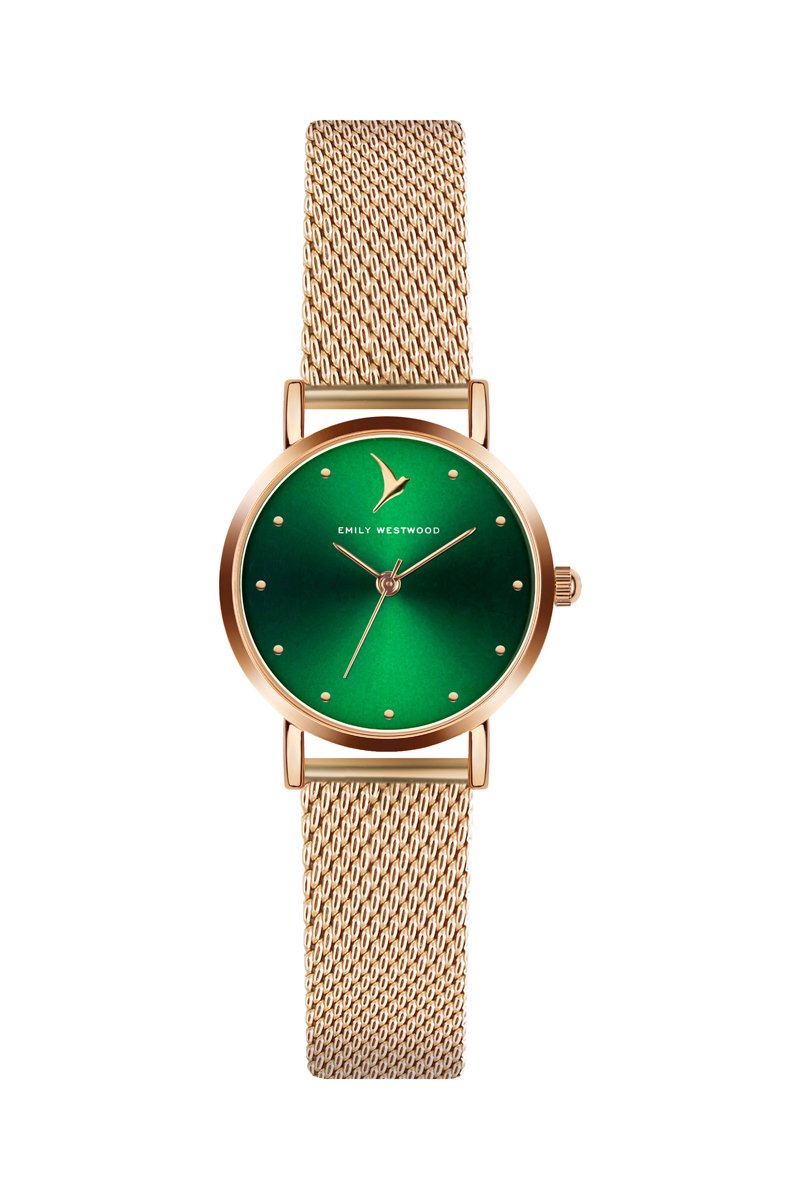 Relógio de quartzo em aço - Dourado rosa e verde - Emily Westwood