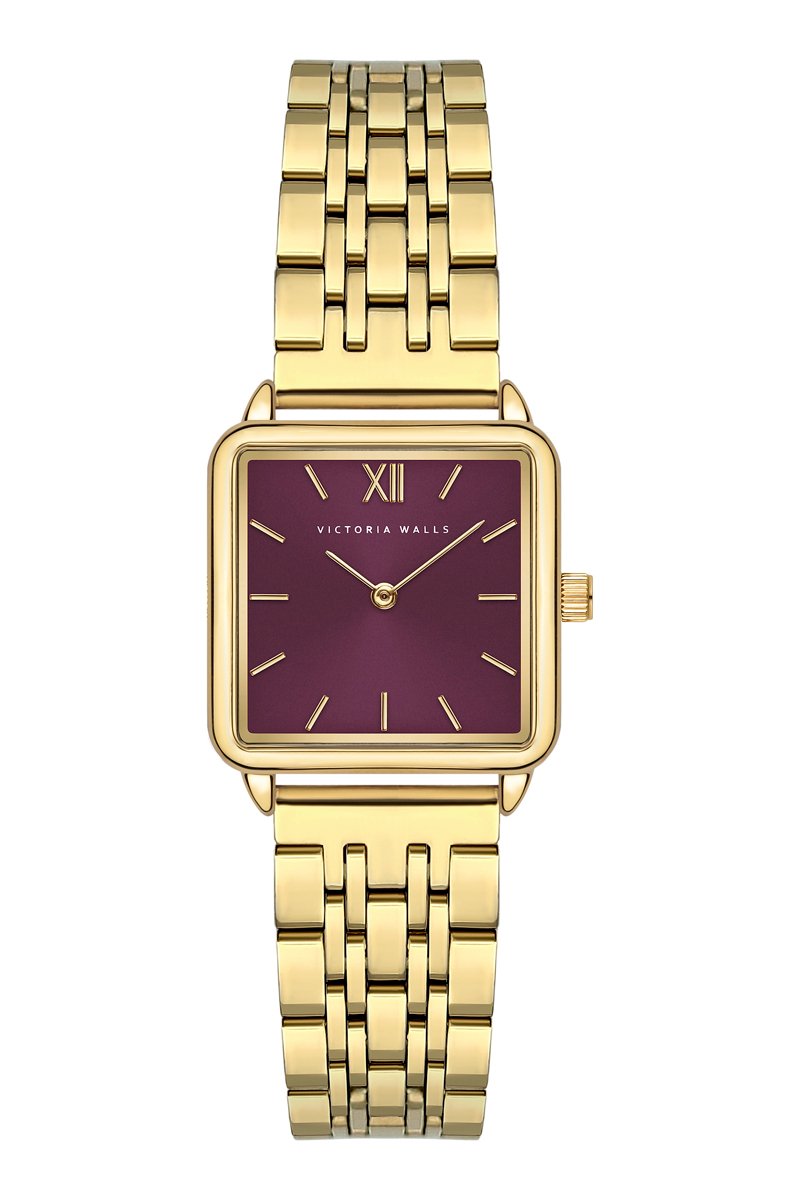 Relógio de quartzo em aço - Dourado e bordô - Victoria Walls