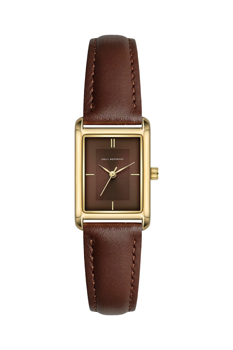 Relógio de quartzo em couro - Castanho e dourado - Emily Westwood