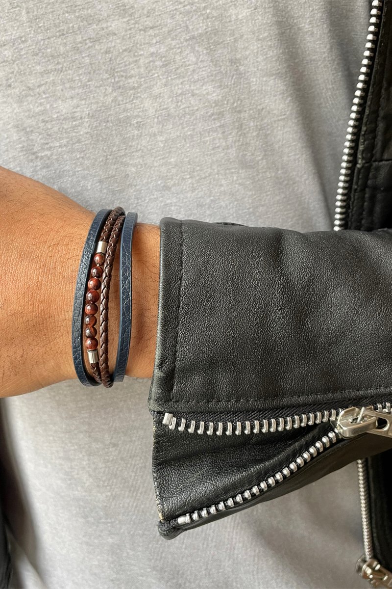 Composição: aço inoxidável, couro e olhos-de-tigre