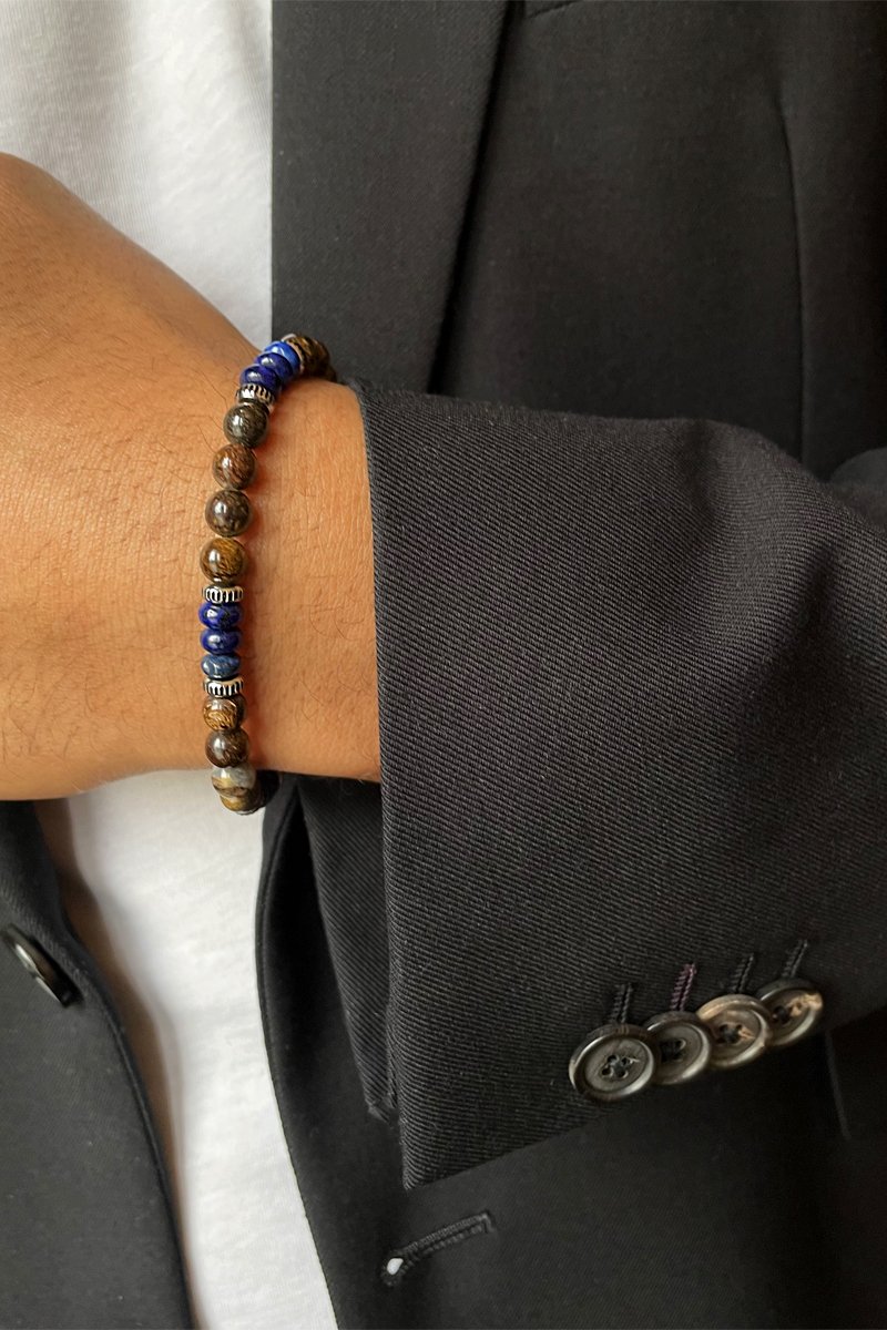 Pulseira com bronze e lápis-lazúlis.