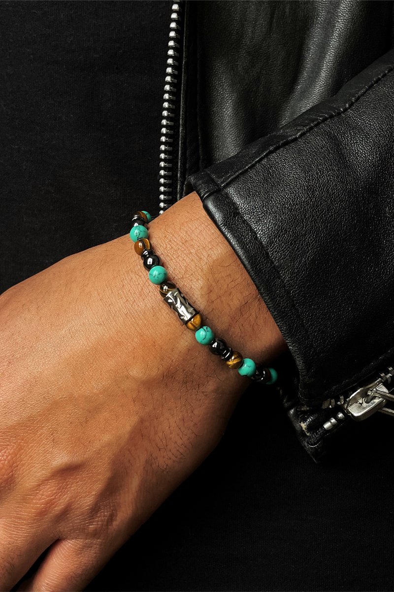 Pulseira - Hematitas, olhos-de-tigre e turquesas