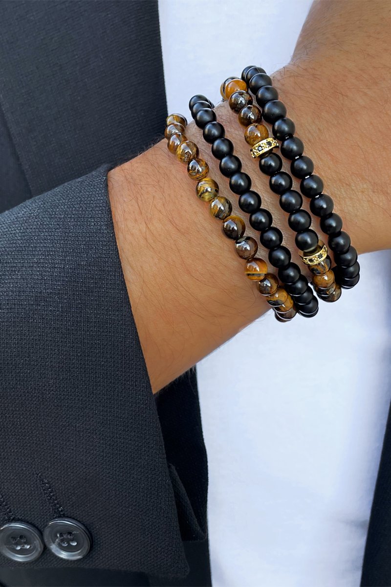 4 pulseiras com olhos de tigre.