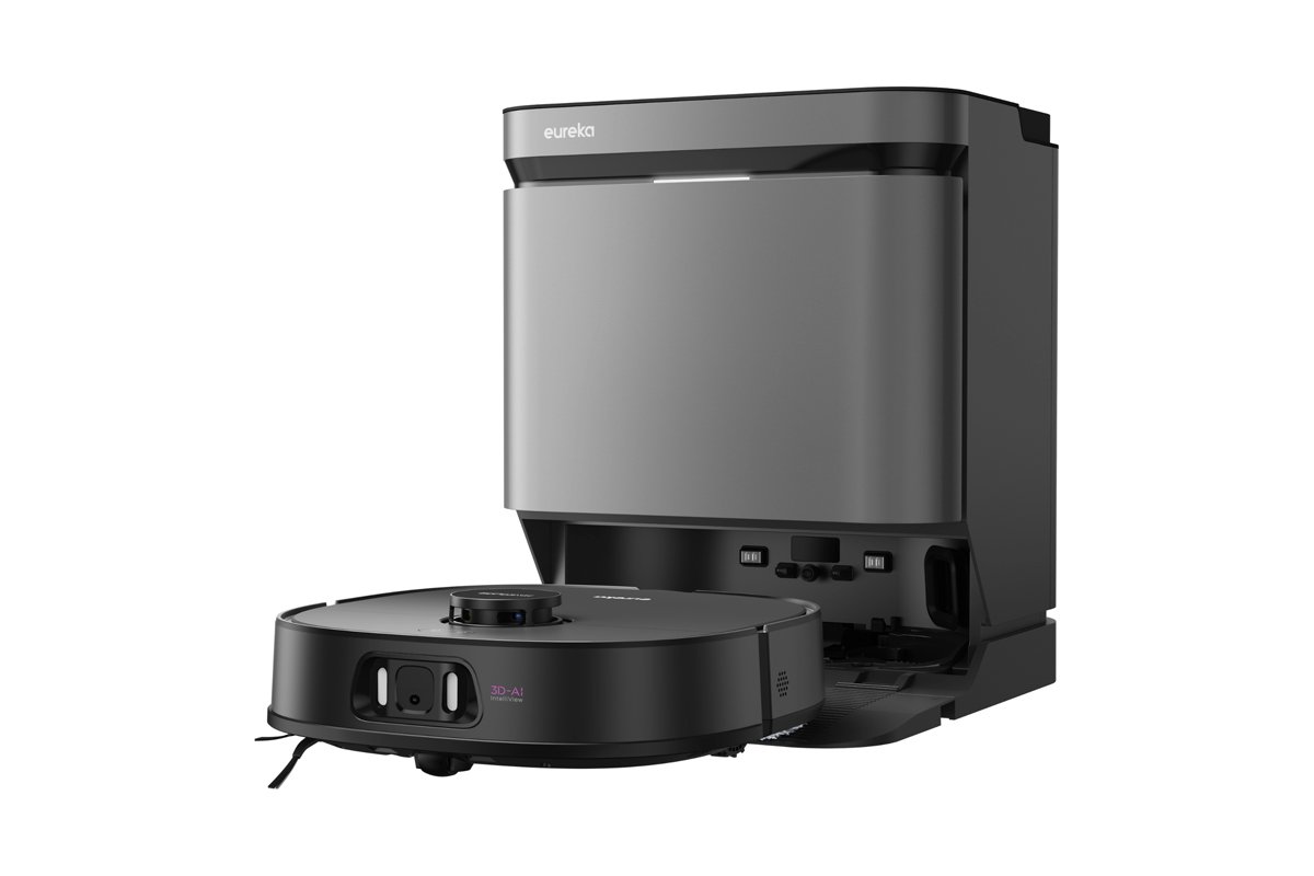 Uma das suas características mais notáveis é a sua estação base de auto limpeza, que automatiza a drenagem do reservatório de pó e a lavagem da esfregona em água quente a 75°C.