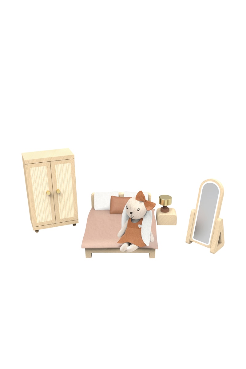 Quarto para casa de bonecas em madeira e linho - 6 peças - A partir dos 3 anos