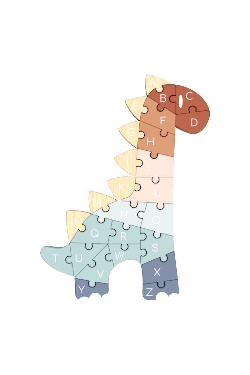 Puzzle ABC dinossauro em madeira.
