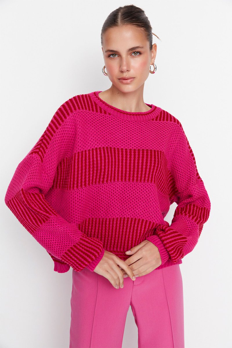 Camisola às riscas - Fúcsia e vermelho