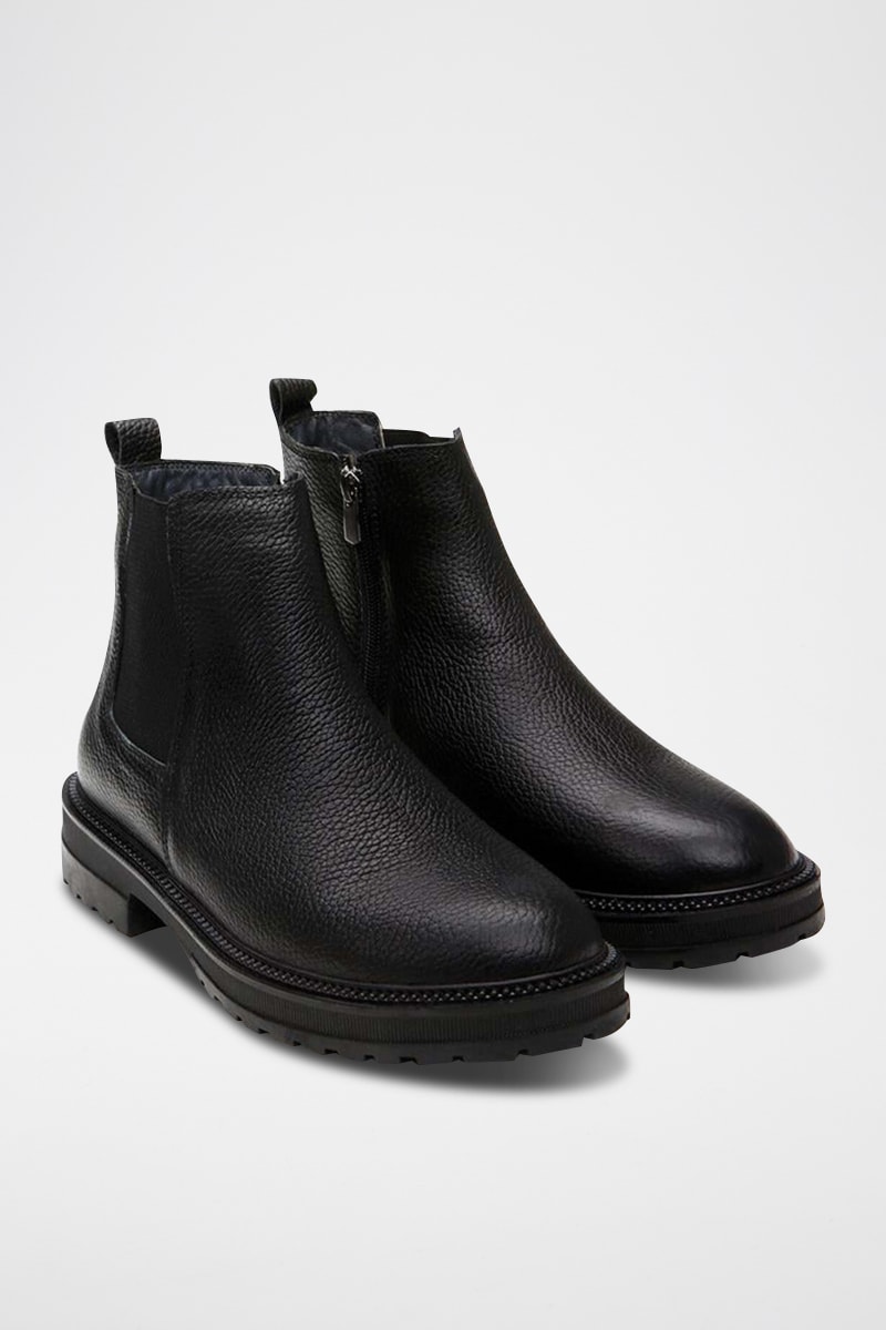 Botins Chelsea em couro.