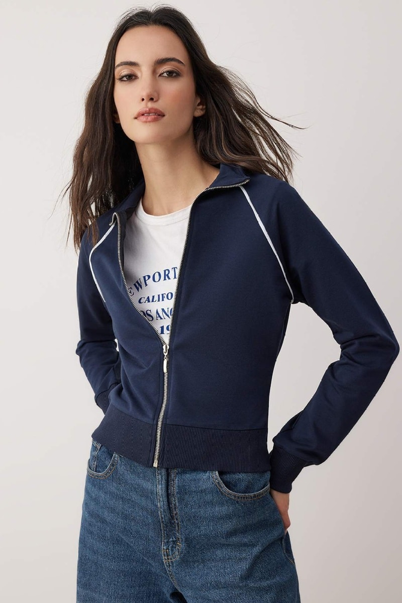 Gola com fecho zip.