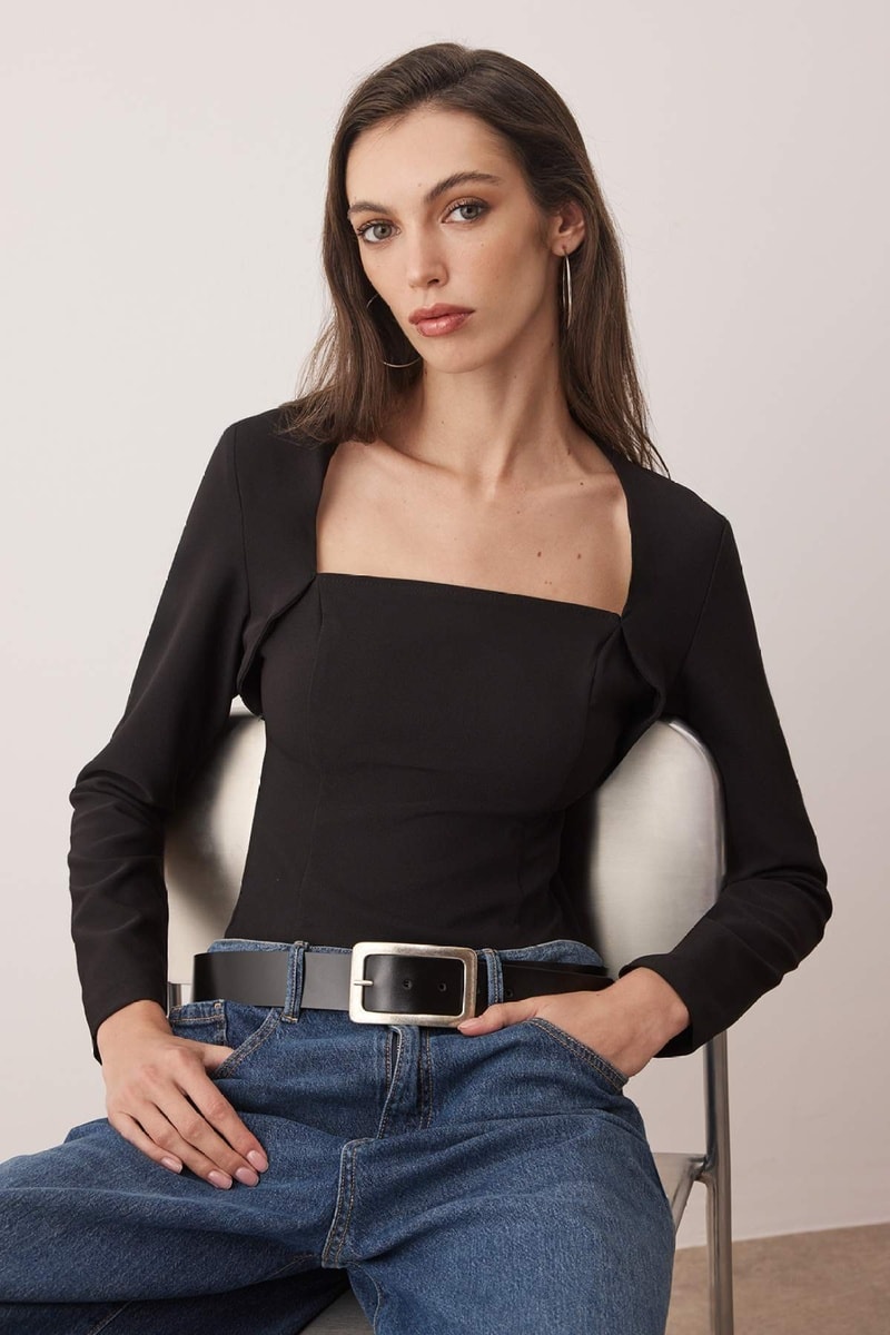O modelo mede 177 cm e veste o artigo no tamanho S.