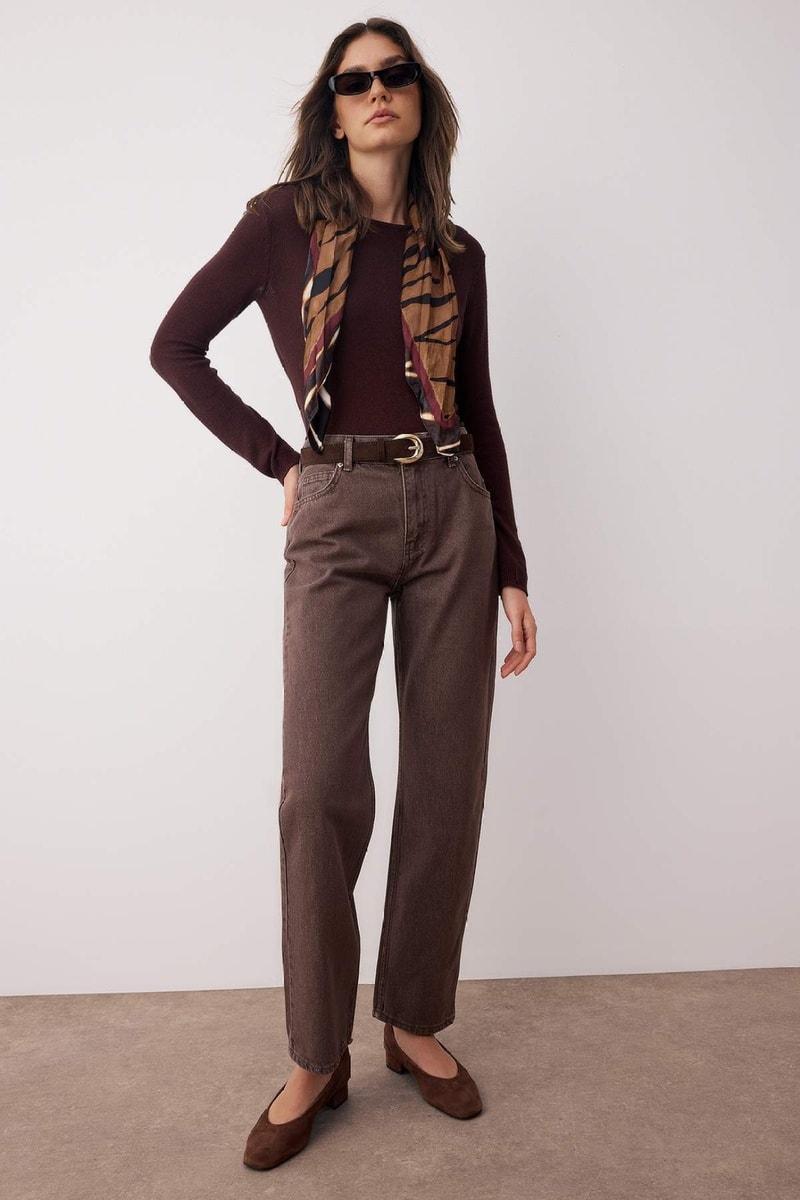 Calças de ganga de cintura alta - Castanho