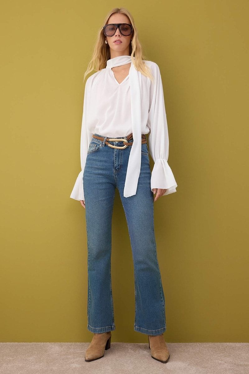 Calças de ganga flare.