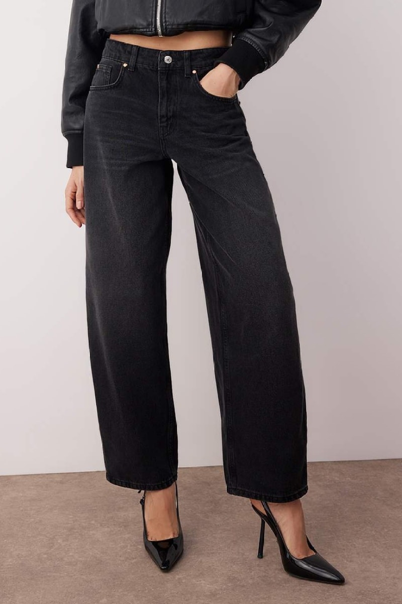 Calças de ganga de cintura alta - Preto