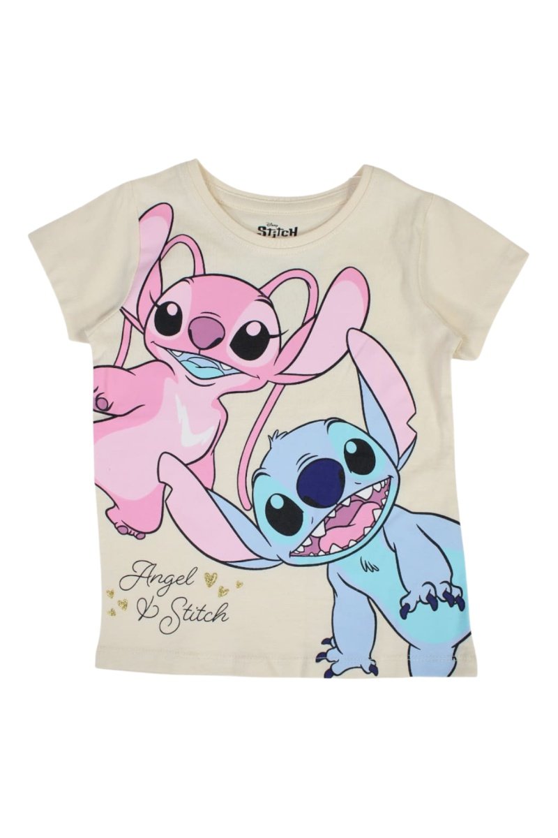 T-shirt Angel e Stitch Lilo e Stitch Disney - Bege - Preto, bege, azul e rosa