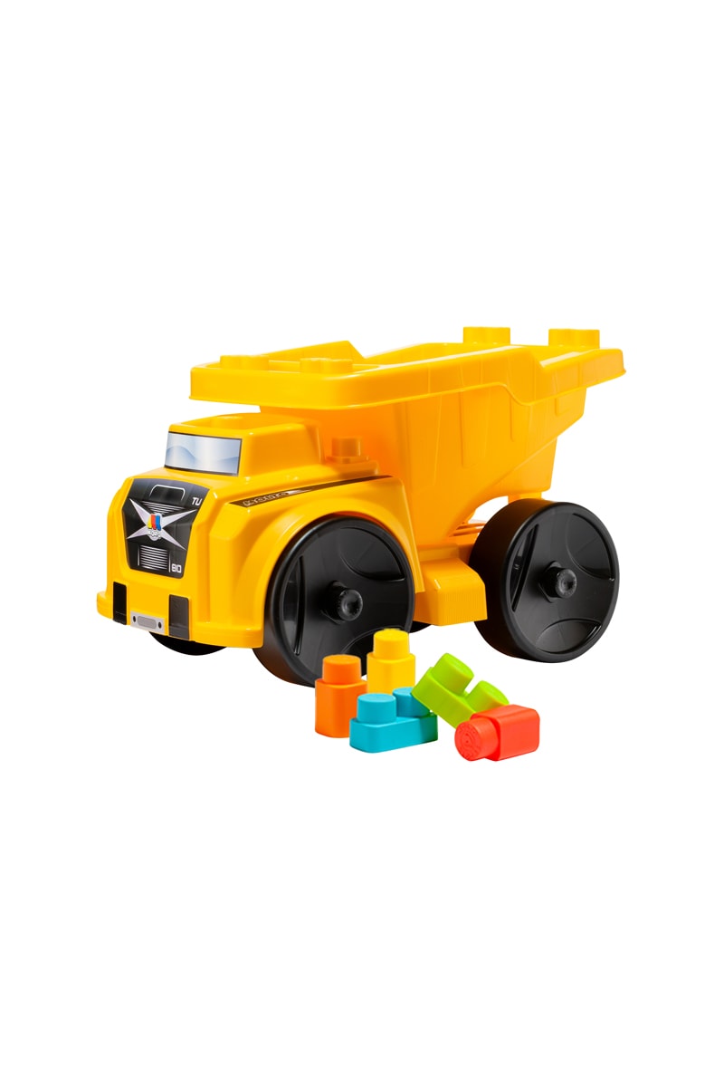 A báscula inclina-se para descarregar facilmente os blocos após a brincadeira.
