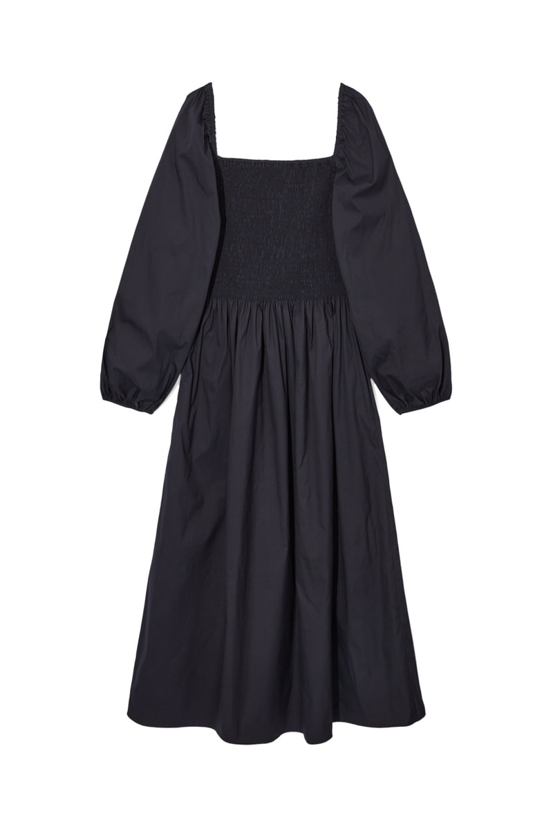 Vestido estilo patinadora de mangas compridas volumosas elásticas.