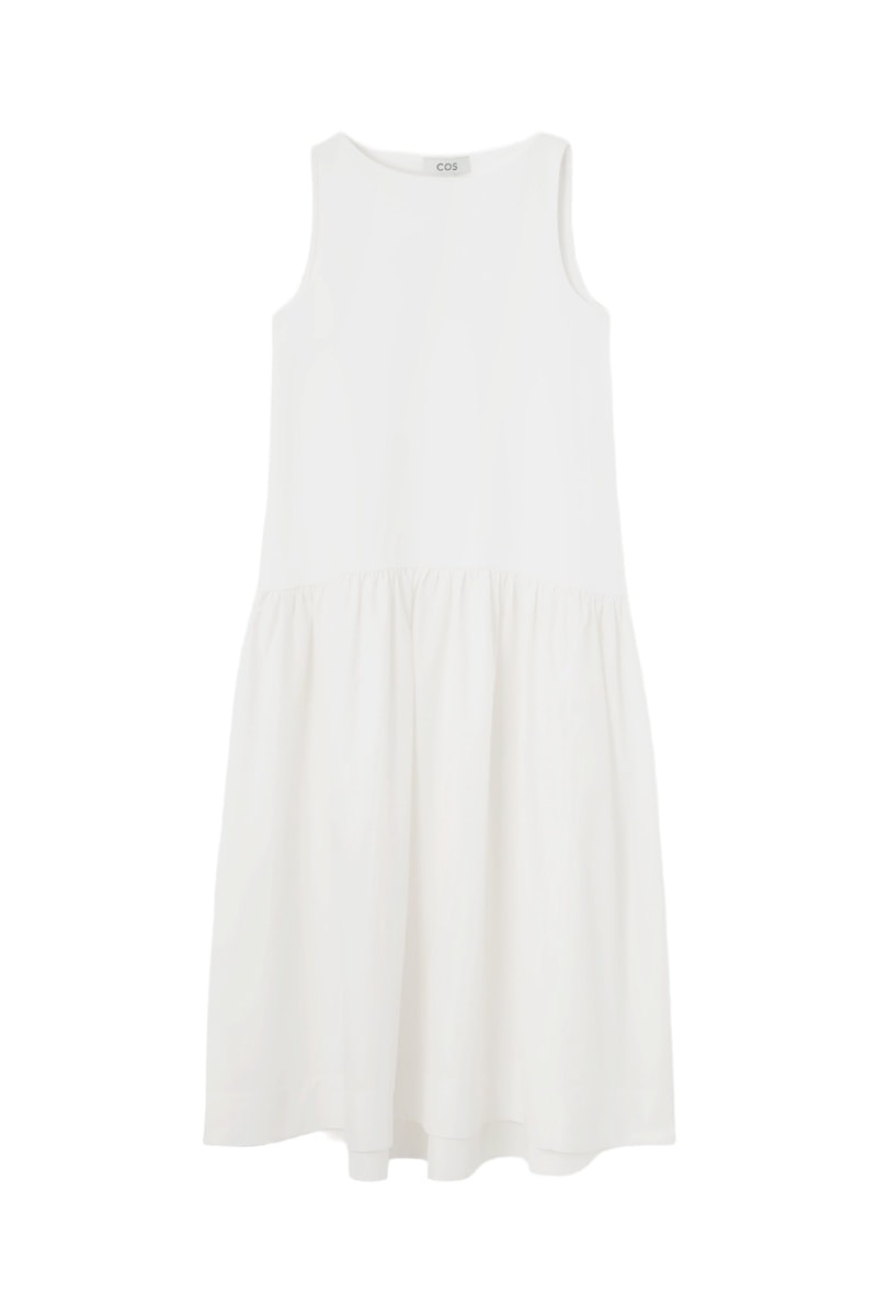 Vestido comprido sem mangas.