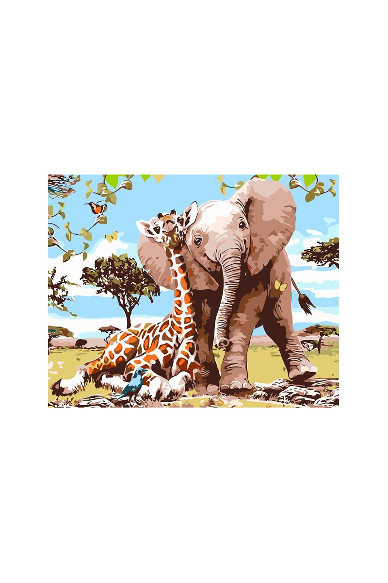 Pintura por número elefante e girafa - 40 x 50 cm - A partir dos 3 anos