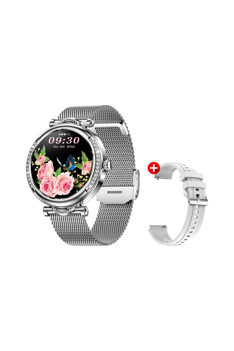 Atraente pelo seu mostrador adornado com strass, este relógio é combinado com uma bracelete milanesa em aço inoxidável.