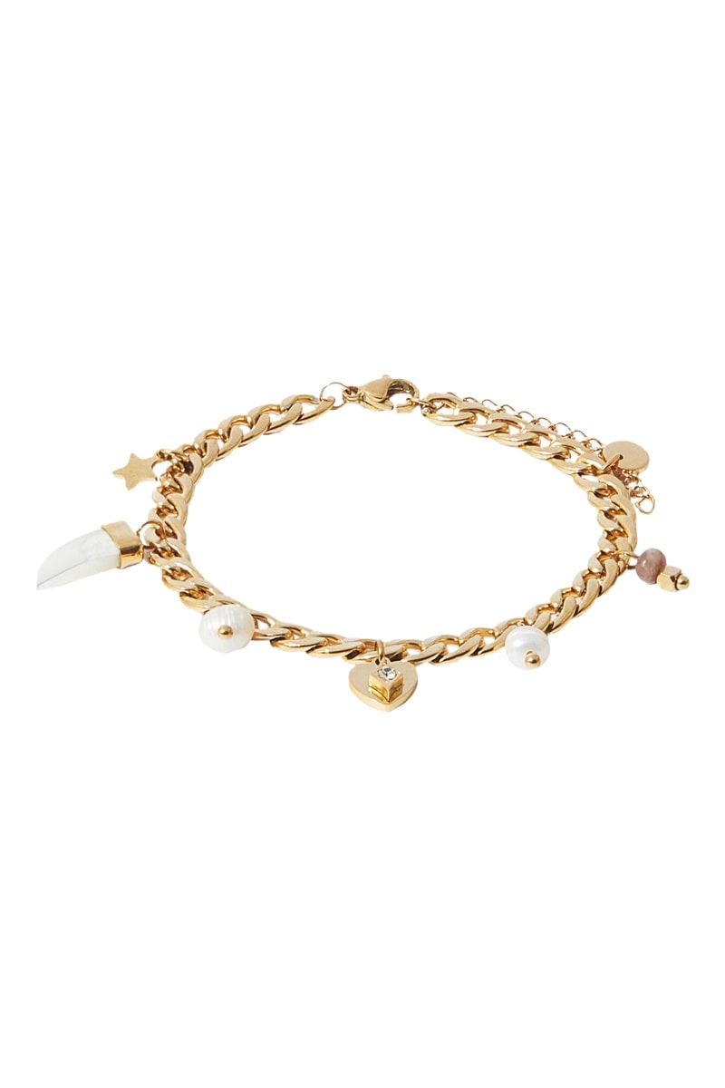 Composição: aço inoxidável, pérolas de imitação, conchas e cristais