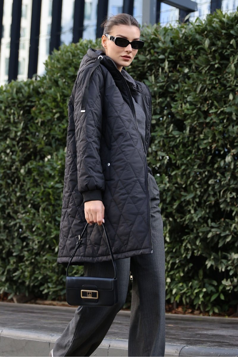 Blusão regular com capuz - Preto
