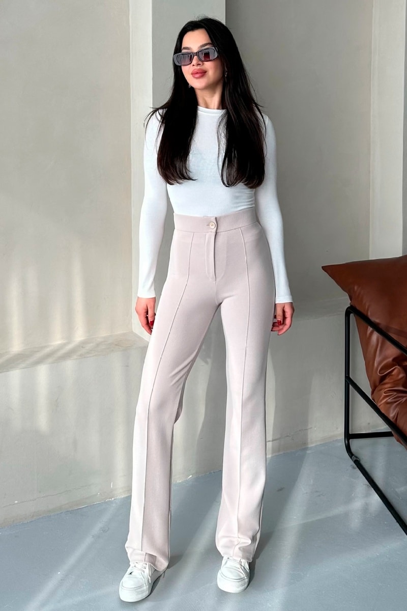 Calças palazzo de cintura alta - Bege