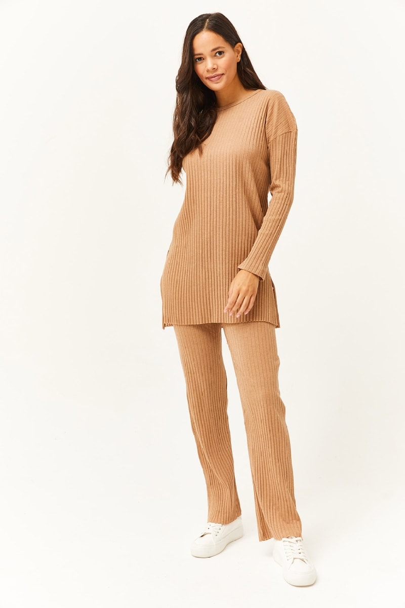 Túnica e calças palazzo - Camel