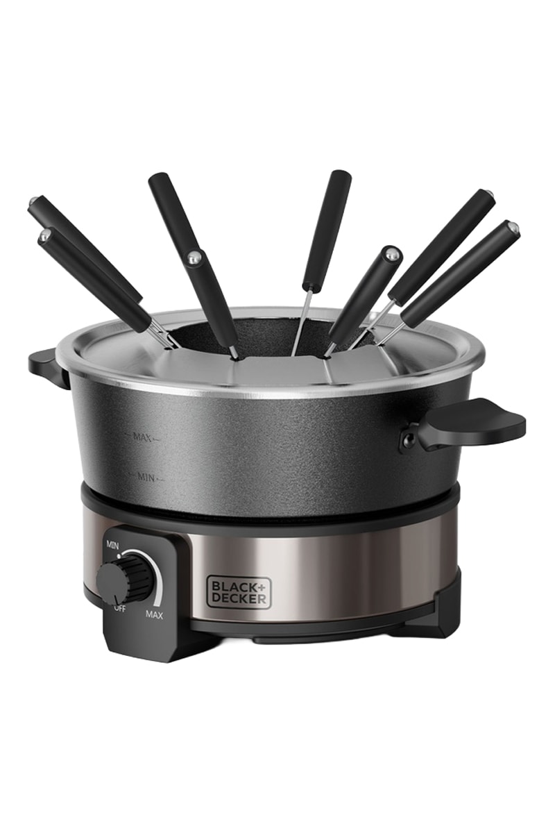Termostato regulável até 200°C para óleo ou 99°C para água, adequada a cada tipo de fondue.