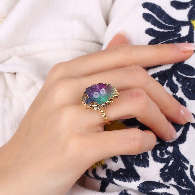 Encante-se com este anel em latão banhado a ouro adornado com um magnífico quartzo de nuances intensas. Refinada e elegante, ela traz um brilho profundo à sua mão, ideal para sublimar todos os seus trajes com um toque precioso e intemporal.