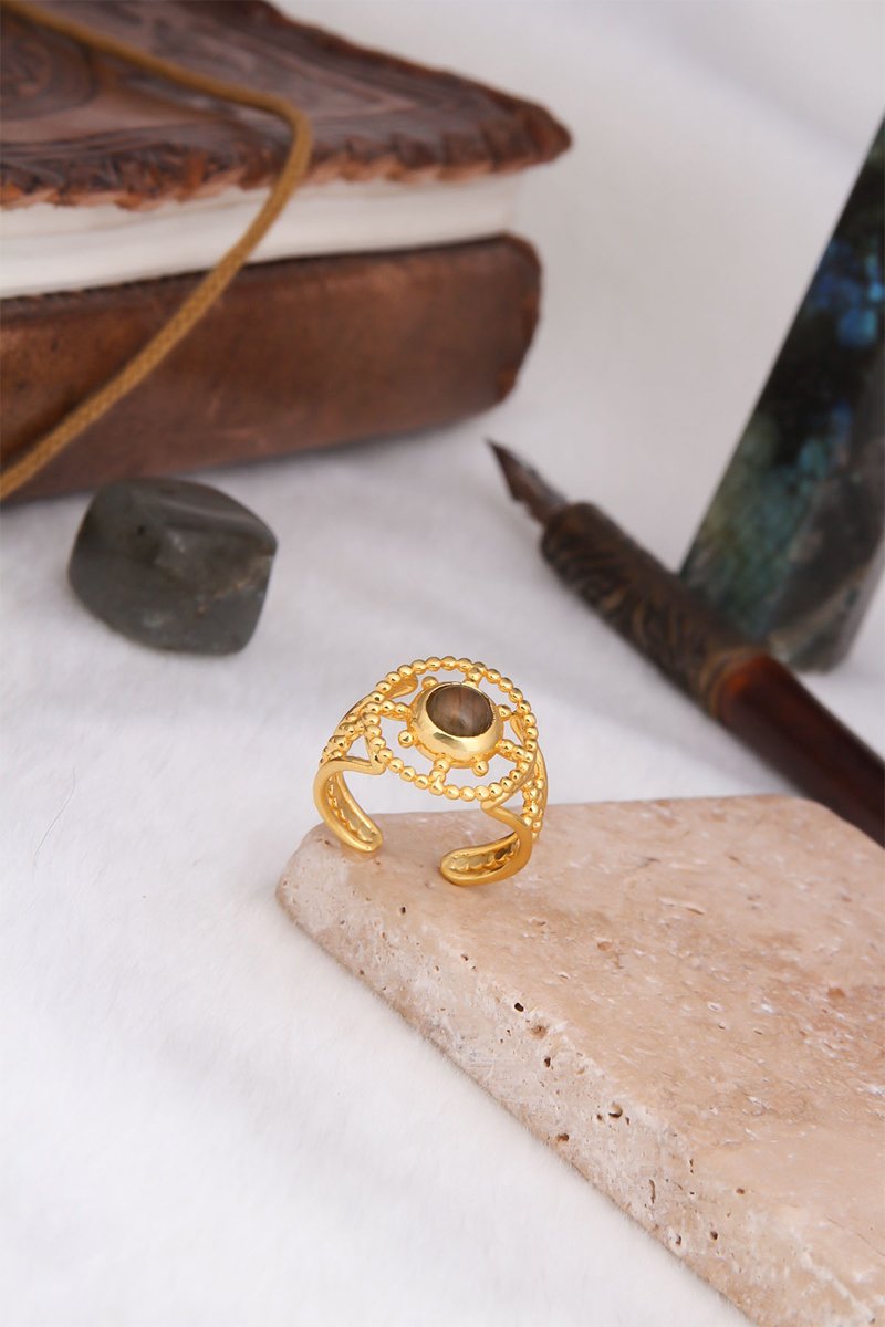 Composição: latão banhado a ouro amarelo, cobre e labradorite