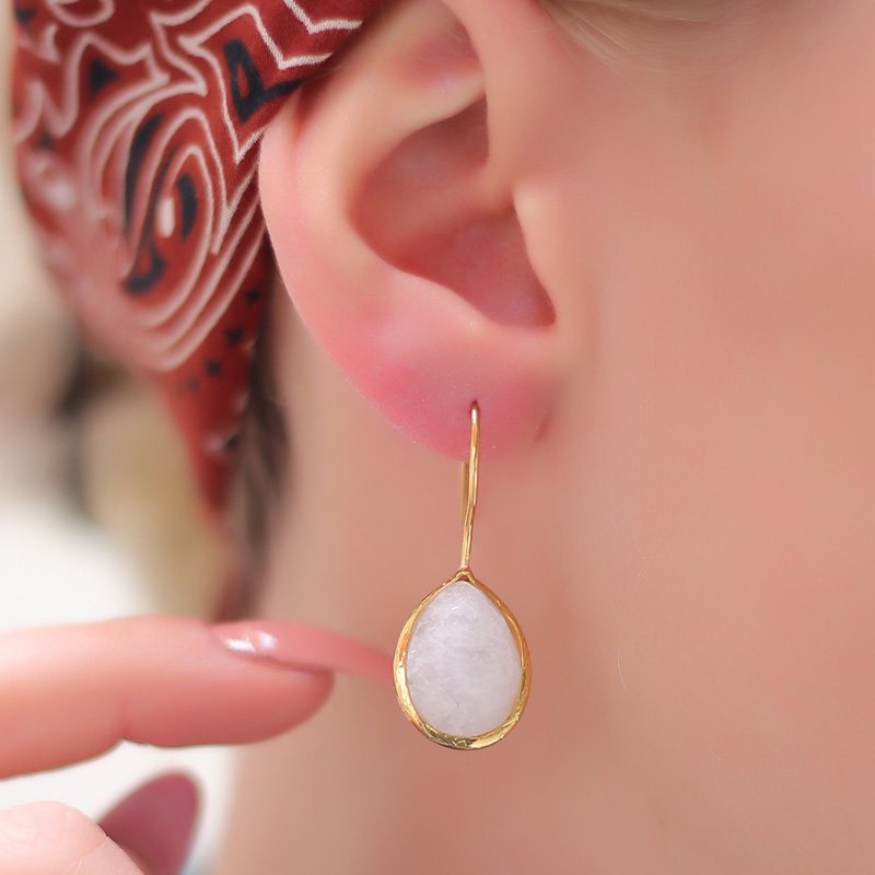 Brincos - Latão banhado a ouro e pedra pedra de lua