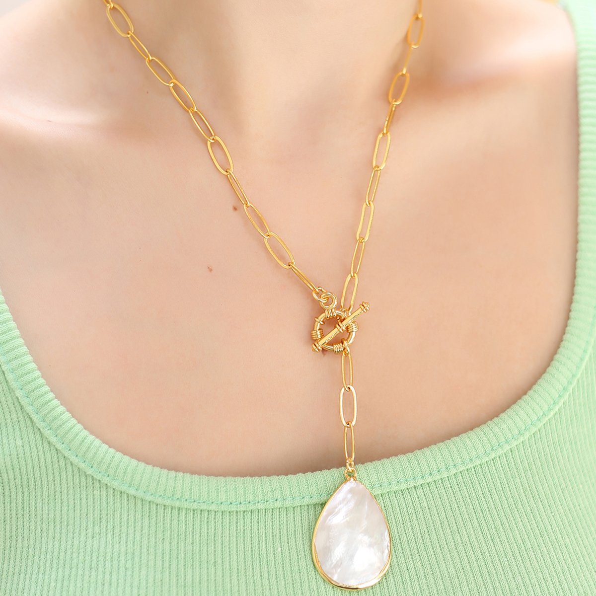 Colar - Latão banhado a ouro e madrepérola