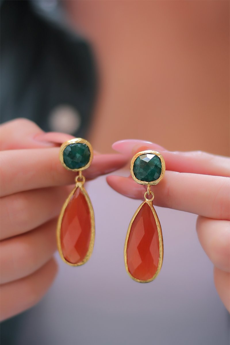 Brincos pendentes banhados a ouro amarelo com uma ágata e um zircónio.