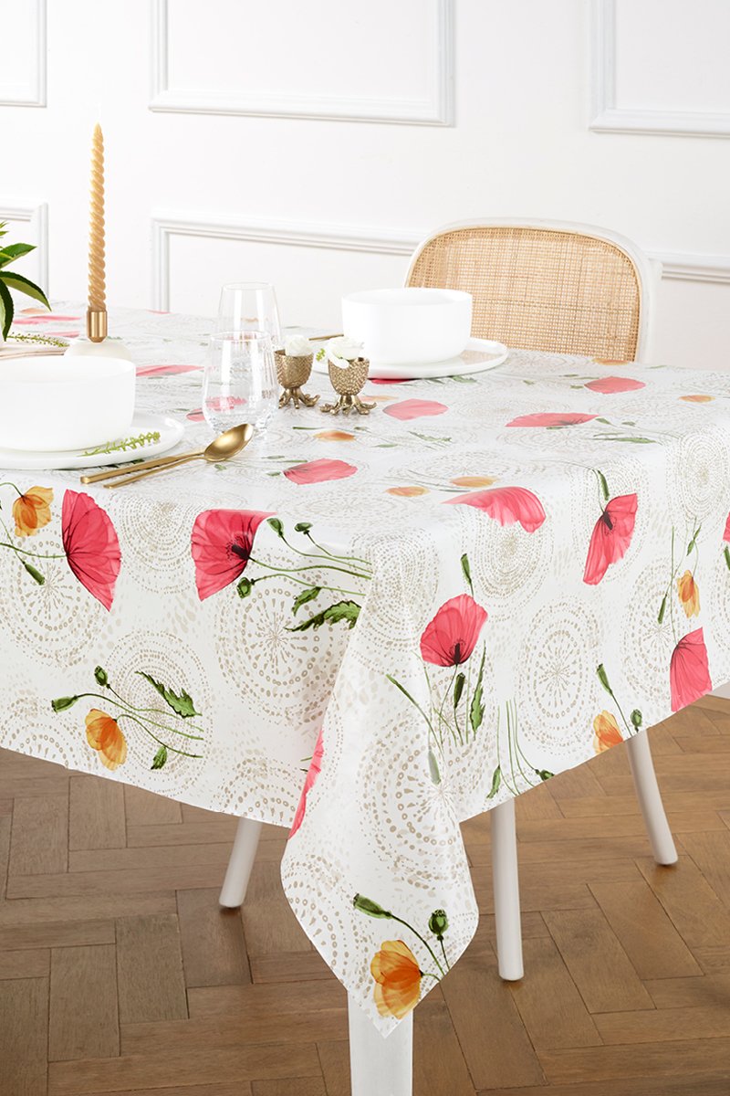 Toalha de mesa anti-nódoas Champ de pavot - Branco e rosa