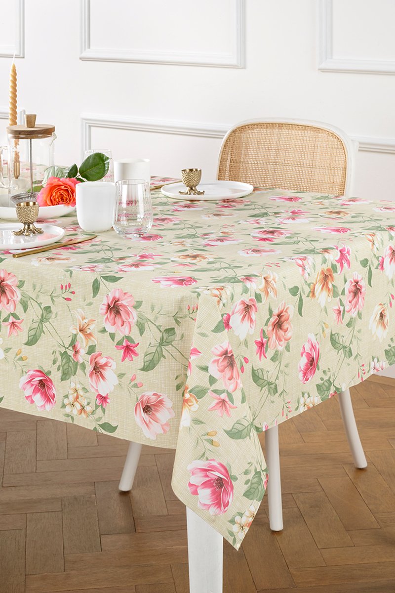 Toalha de mesa em plástico Eclosion de fleurs - Verde e rosa