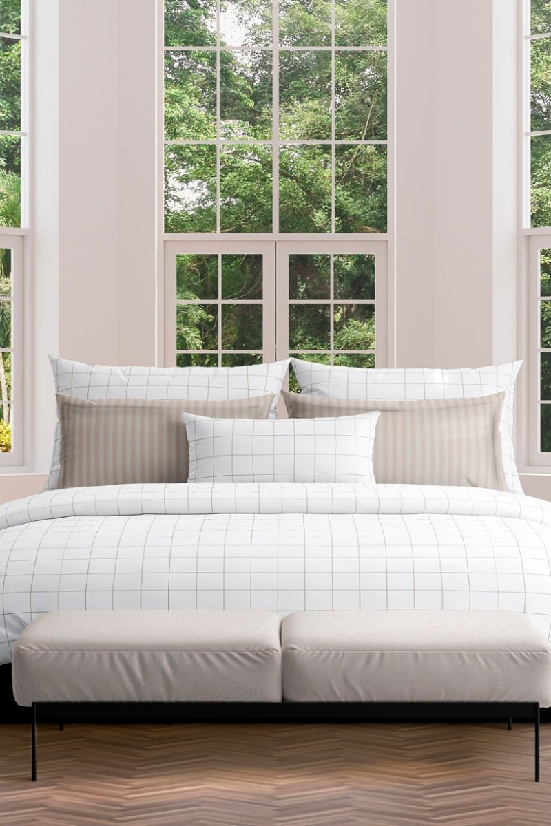 Conjunto de edredão em cetim de algodão 80 fios/cm² Carreaux - Branco e toupeira