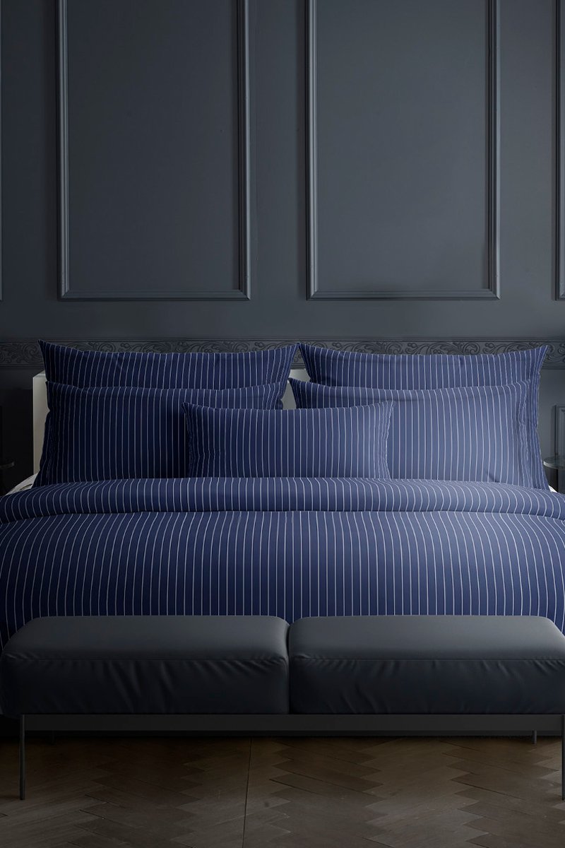 Conjunto de edredão em cetim de algodão 80 fios/cm² Rayures élégantes - Azul-escuro