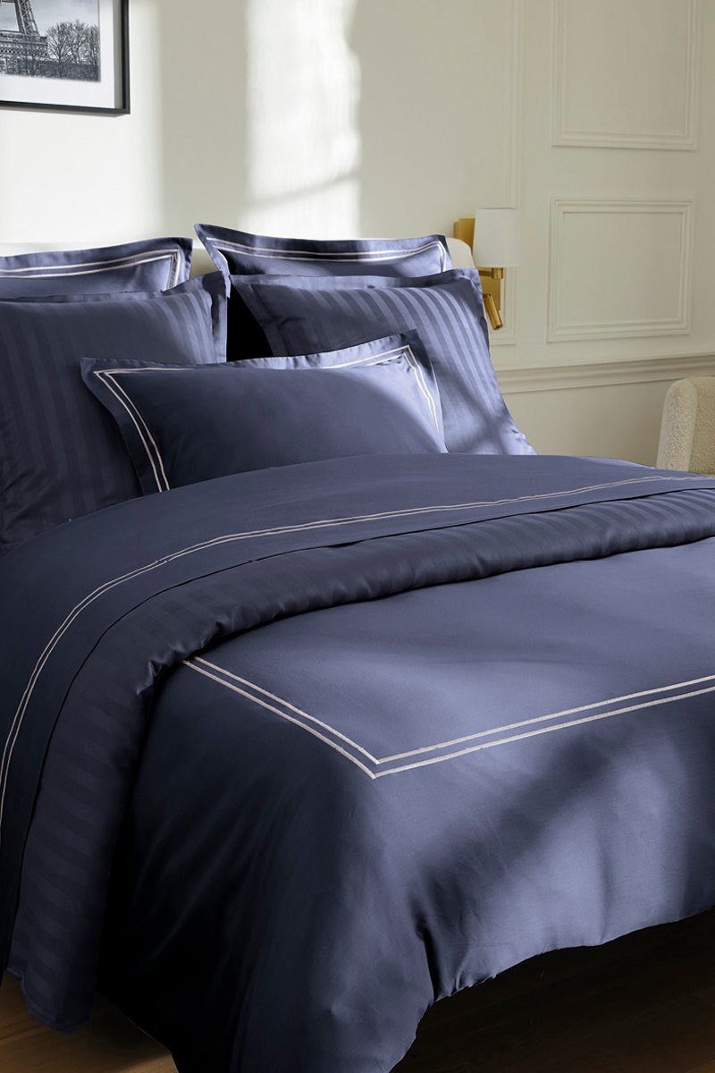 Conjunto de edredão em cetim de algodão 80 fios/cm² Paris - Azul escuro e branco