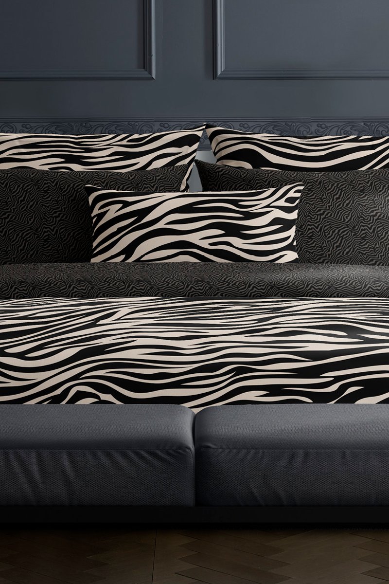 Conjunto de edredão em cetim de algodão 80 fios/cm² Rêves zébrés - Preto