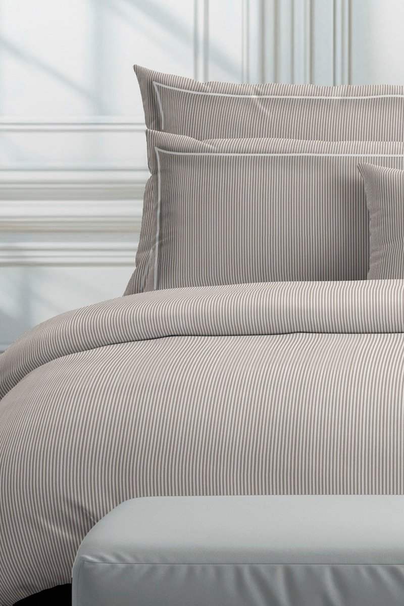 Lençol liso em percal de algodão 80 fios/cm² Dauphine - Toupeira e branco